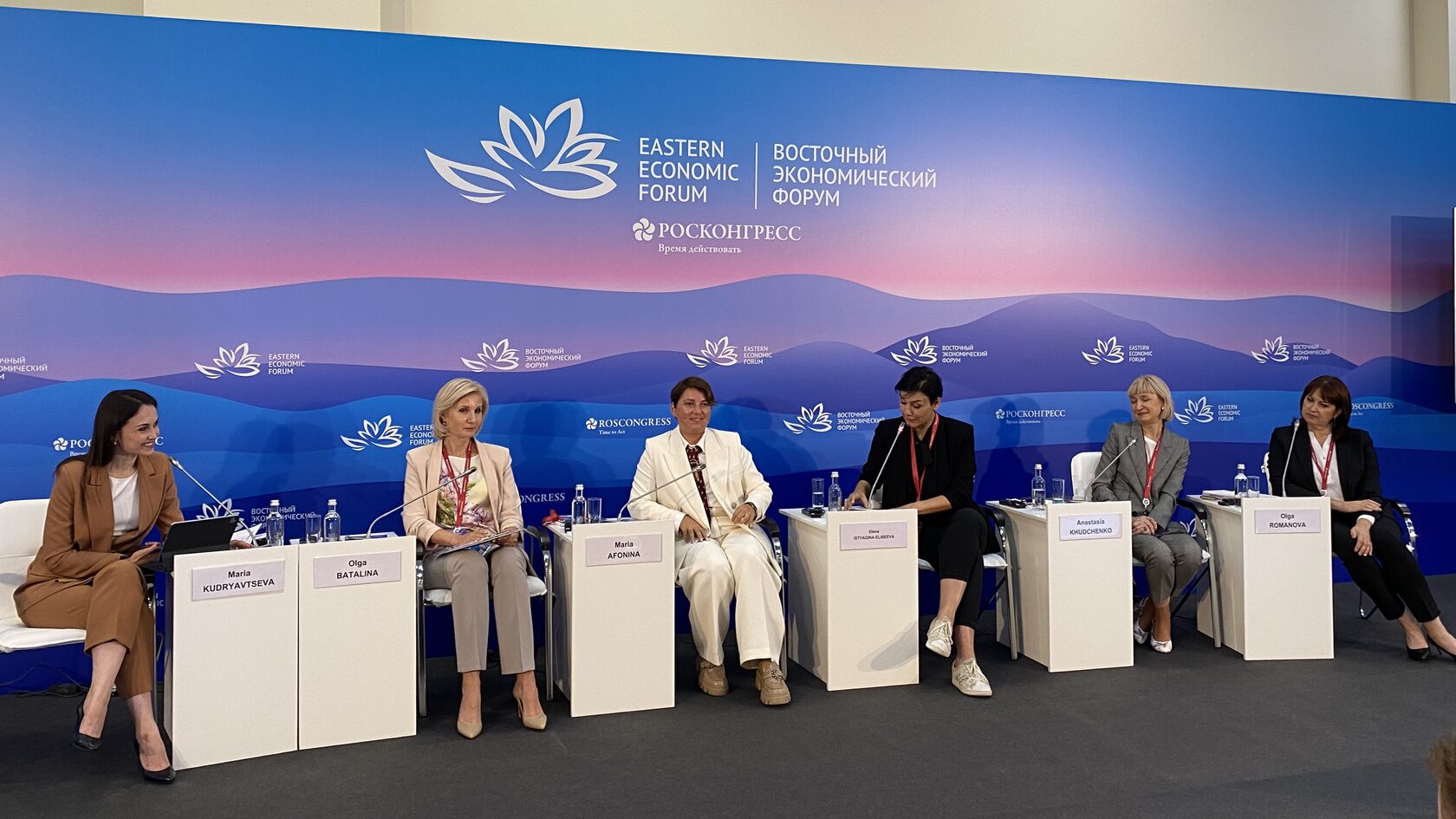 5 сентября в рамках Восточного экономического форума прошла сессия «Женская повестка для здорового общества: новые возможности на удаленных территориях», в которой приняла участие Мария Афонина, проректор по образовательной деятельности Мастерской управления «Сенеж» президентской платформы «Россия – страна возможностей».